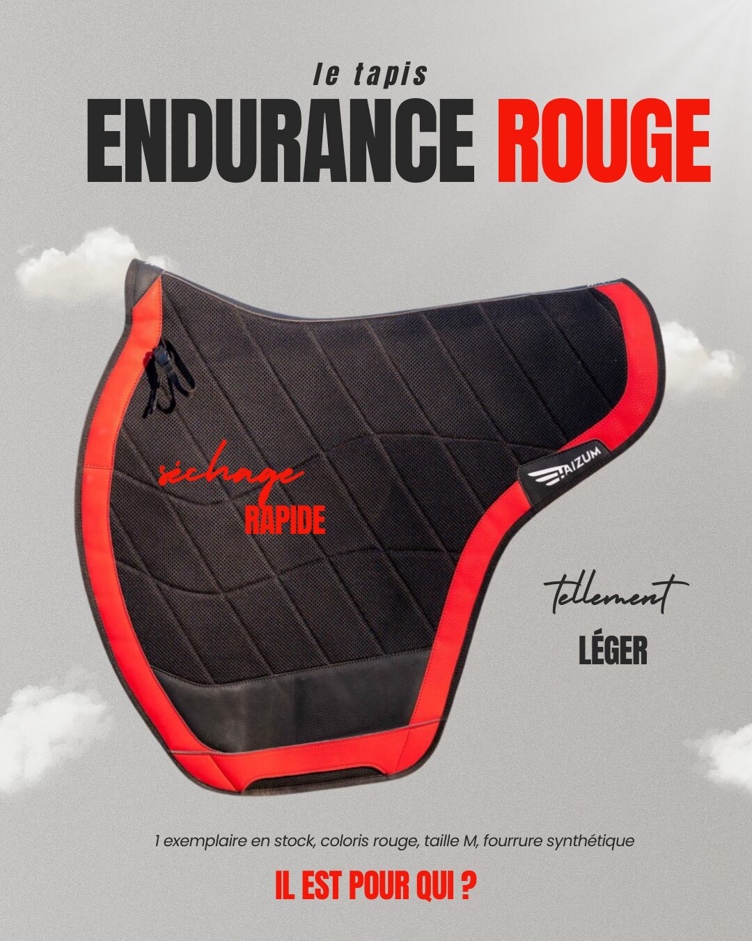 Les matières ont été choisies et développées pour que le tapis soit VRAIMENT respirant. Cela fait moins transpirer votre cheval et son dos chauffe moins. Sous la selle, vous retrouvez du mesh par exemple !